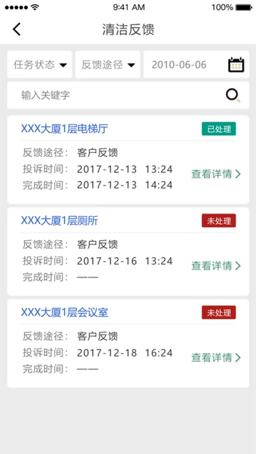 3、实时展示统计项目报事、品质,足不出户掌控项目数据。