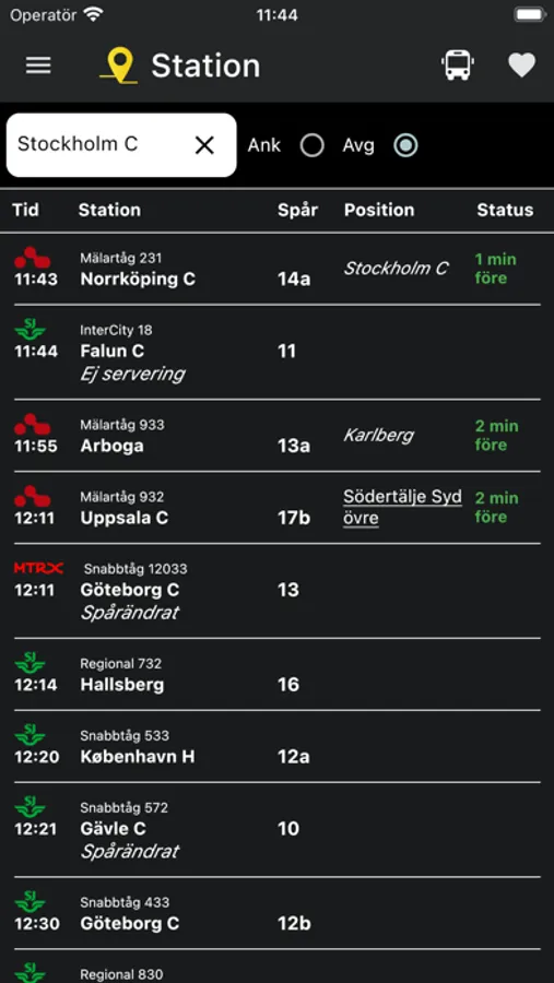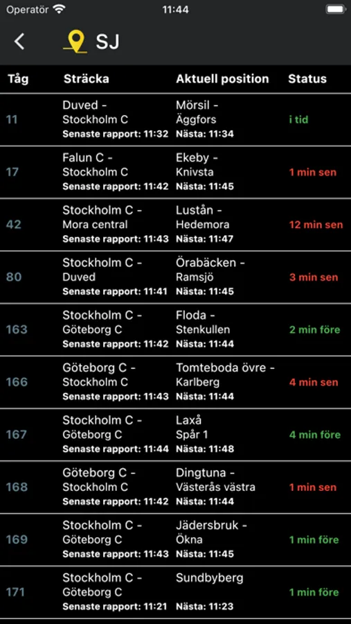 Realtidsinformation om tågtrafiken i Sverige. Se trafikstörningar, förseningsorsaker och var tågen befinner sig.