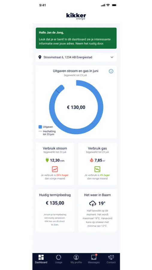 We give you insight into your energy usage and costs through interesting tools. In a clear dashboard, you can see exactly what your energy costs are and you can even compare this with our estimate. You can also see in detail (up to an hourly level) how much electricity and gas you have used and how expensive this was. Do you have multiple addresses? No problem, all your addresses are visible in the app.