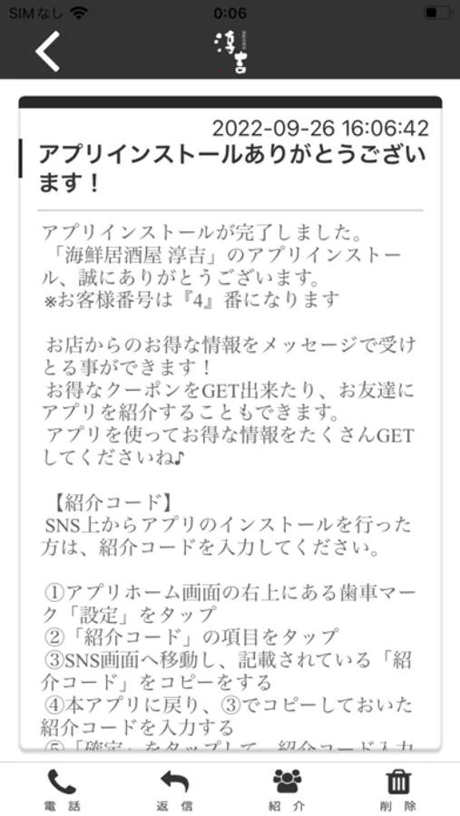 淳吉のアプリをSNSを通じてお友達に紹介する事ができます。