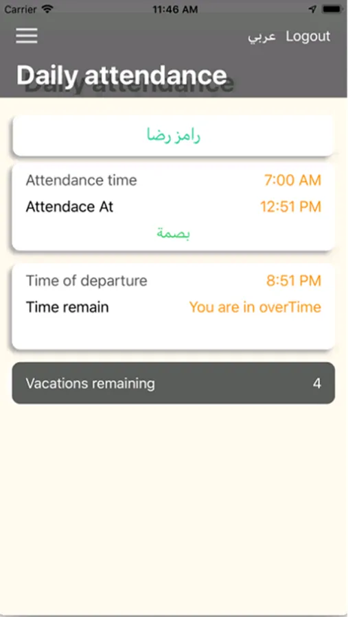 Almoawen EM application is a part of Almoawen Time Attendance System and this app is serving employees and team leaders to help them following up their logs and statistics of time attendance, Almoawen EM app gives employees facility to attend using face recognition based on their GPS location