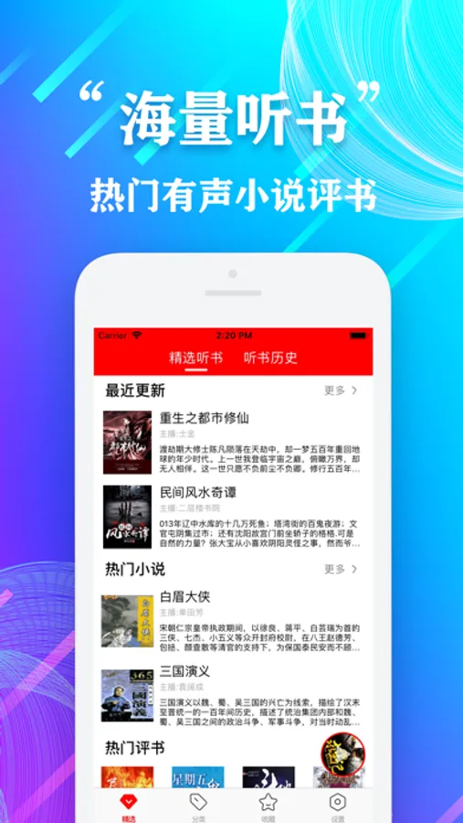 我要听书软件专注收听有声读物,听最新听最热门小说,全站任意听