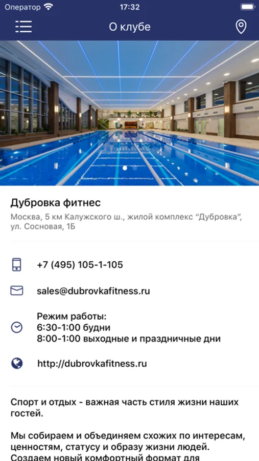 С помощью приложения вы можете оплачивать услуги и абонементы, следить за новостями, расписанием клубов, оперативно получать информацию об изменениях в расписании и специальных предложениях Дубровка фитнес