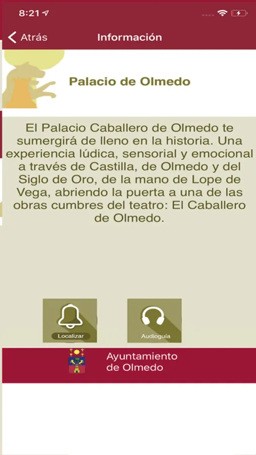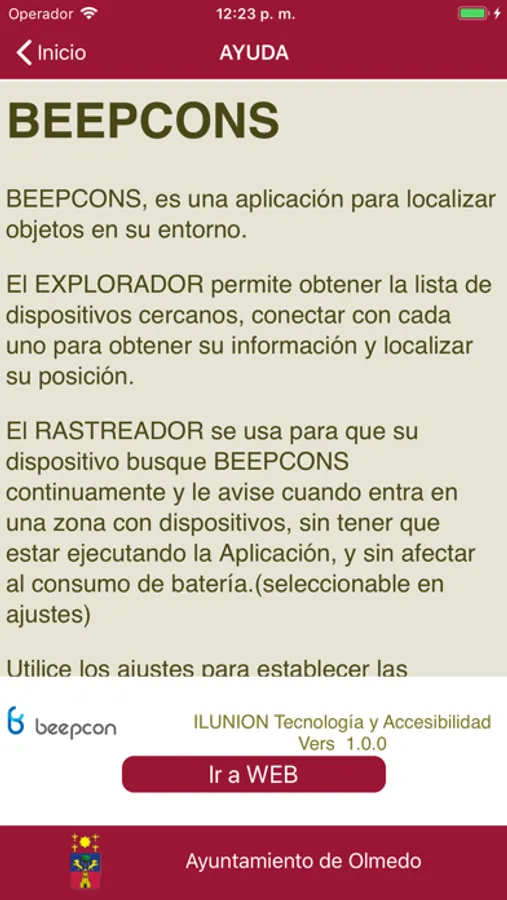 APP que utiliza la tecnología Beepcon, para señalizar y dar información sobre los enclaves turísticos de Olmedo, a la vez que permite acceder a las grabaciones de las mismas, para obtener toda la información de interés para el visitante.
