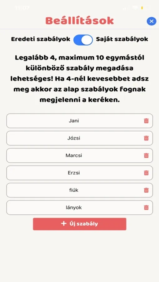 Lehetőségetek van saját szabályokat (nyereményeket) hozzáadni a játékhoz a beállításokban.