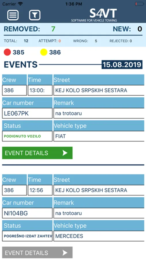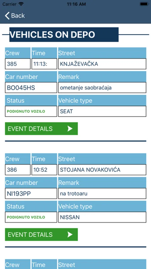 This application is for internal usage of " JKP Parking servis Nis" and showing reports for vehicle towing. Application showing all vehicle towing, number of vehicle towing, current location of trucks and other reports.