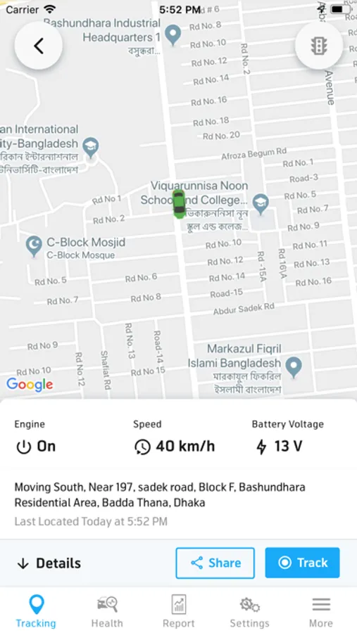 Live Tracking: See your car location, Orientation & Direction in the in-app map