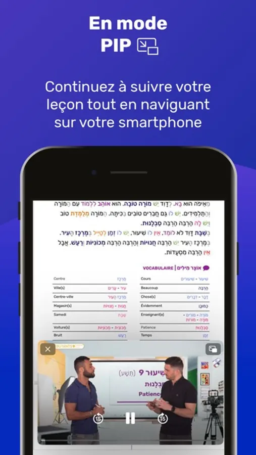 À Cours d’Hébreu, n'est pas qu'une simple succession de vidéos. Il vous permet à partir d'un parcours audiovisuel défini de progresser à votre rythme, et d'acquérir une véritable formation certifiante en Hébreu.
