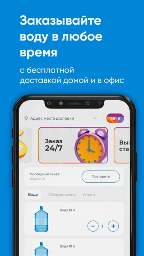 Скачайте бесплатное приложение на телефон и заказывайте чистую воду в удобное время!