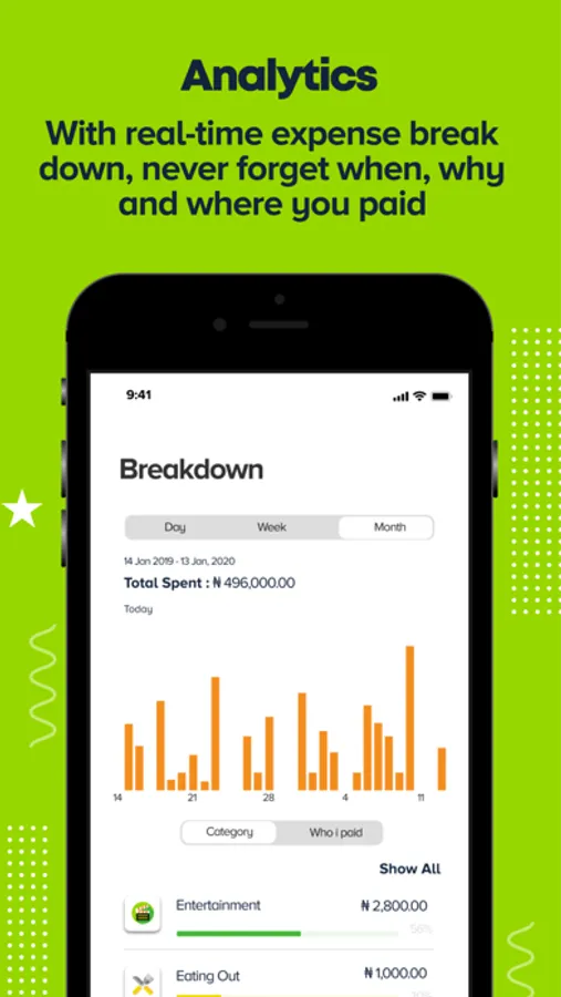 Easily keep track of what you spend, how you spend and when. You also get to know which habit you feed the most and so much more.
