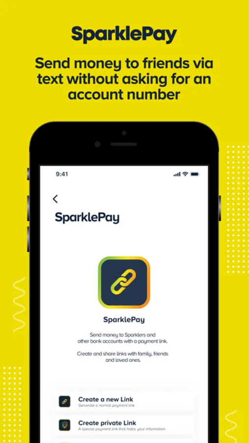Don’t have their account number? No worries! Use Sparkle’s payment link to send money to just about anyone via chat or DM.