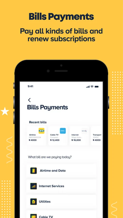 DSTV, Cable TV, Internet subscription, airtime, EKEDC and more. Sparkle makes it easy to pay and schedule recurring payments, so you’re never cut off.