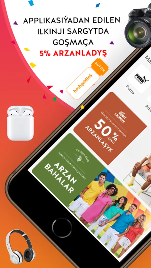 Markayoly.com’uň telefon programmasynyň kömegi bilen, meşhur brendleriň arzanlaşyklaryny yzarlap, gözleýän ähli harydyňyzy ýokary arzanlaşyklar bilen satyn alyp bilersiňiz. Egin-eşik, aksessuar we gözellik brendleriniň ýüzlerçesi, hem-de müňlerçe haryt telefon programmamyzda size garaşýar. Moda indi jübiňizde, üstelik telefon programmasynyň size hödürleýän goşmaça arzanlaşyklary bilen birlikde.