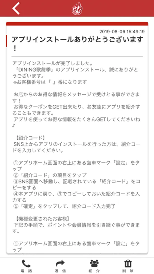 DINING歌舞季のアプリをSNSを通じてお友達に紹介する事ができます。