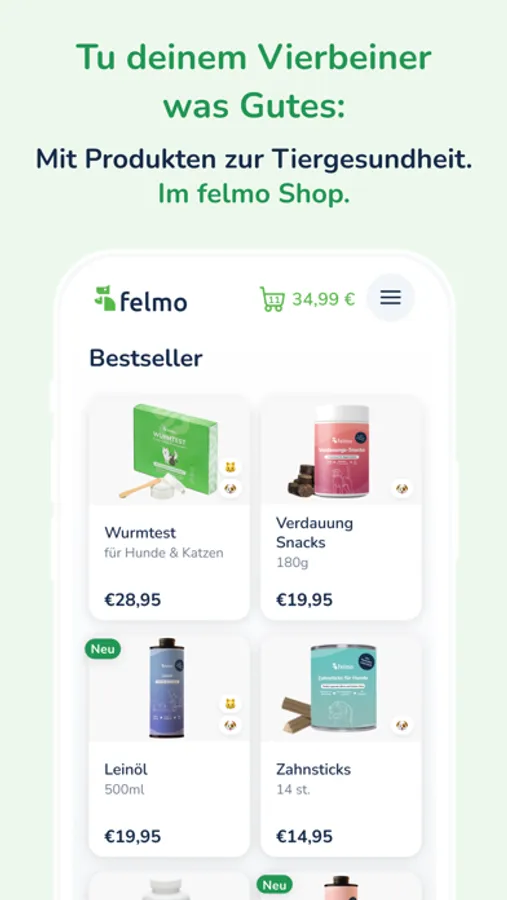 Die felmo App ist ein einfacher Begleiter im Alltag und immer zur Hand – für dich und dein Haustier. Das sind die besten digitalen Features unserer App im Überblick: