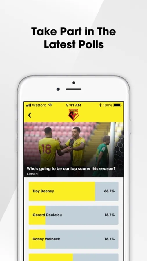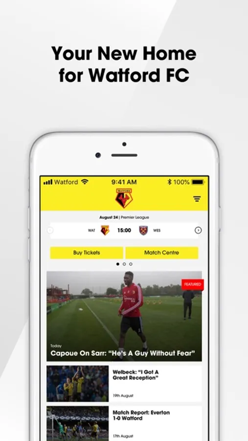 The Official Watford Football Club App is your home for your mobile match tickets, exclusive content and offers – wherever you are on matchdays and every day. Behind-the-scenes video, live match centre and a chance to respond to opinion polls – it's got something for all Hornets' fans.
