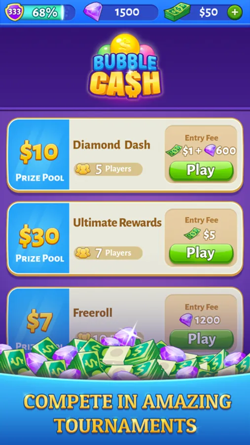 Compete Against Other Players and Win Big with Bubble Cash™!