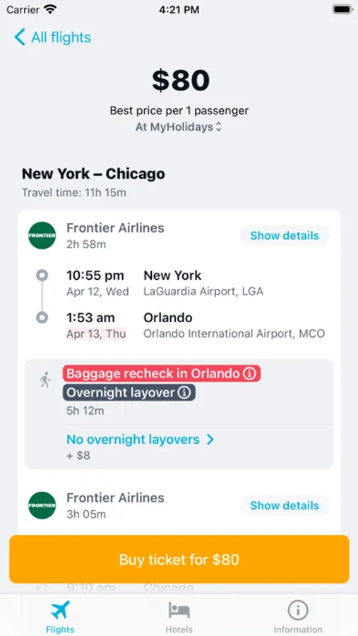 • Flight statistics: Check baggage allowance, delay information, aircraft models, and even who’s running your flight. Who knew plane tickets could come with so much? We do more than providing deals on flight tickets, we give you the details.