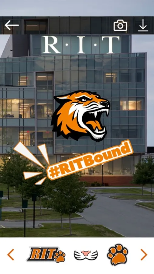 Explore the camera feature and claim your Tiger pride. Capture the possibilities and add an RIT themed sticker to share it on social using #RITtigersAR.