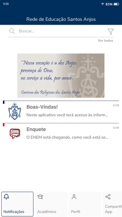 Ponto de comunicação institucional, serviços acadêmicos e financeiros. Alunos e famílias têm acesso a comunicados, avisos, lembretes, notas, frequência, extrato financeiro, quadro de horários e muito mais. Professores podem lançar notas, fazer chamada e registrar o conteúdo das aulas.