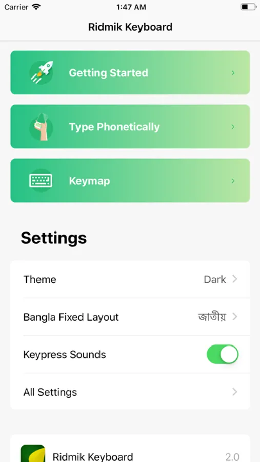 Ridmik Keyboard is a full-featured keyboard for writing in Bangla on iOS. This app is totally free and does not contain any ads.