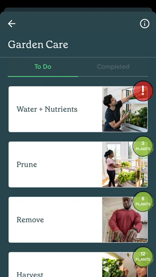Reminders to perform garden care tasks like feeding, pruning, pollinating, and harvesting!