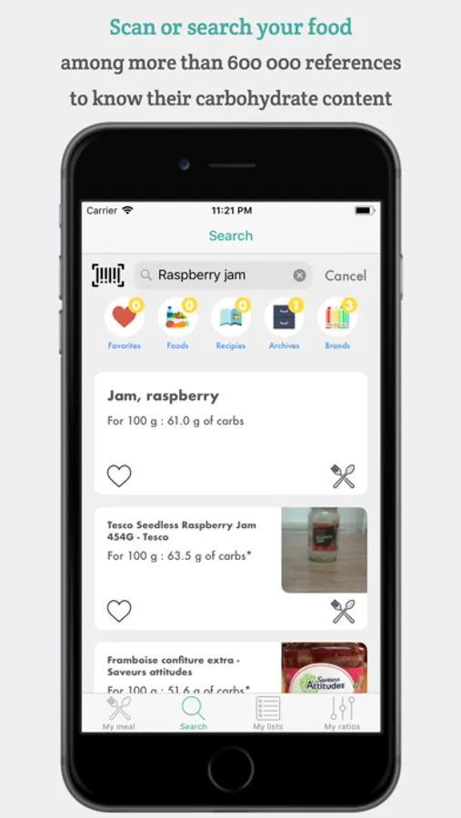 * Scans the barcode of your products to see carbohydrates.