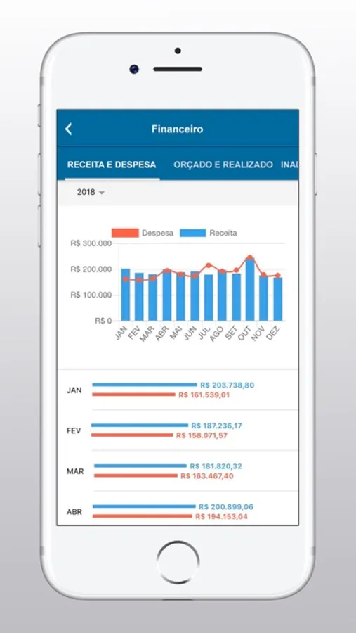 - comparativo de orçado versus realizado (gráficos e detalhamento)