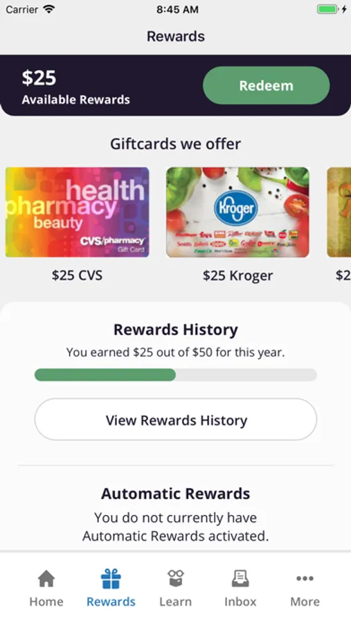 • Rewards: redeem your earned rewards for gift cards and prizes from some of the nation's top retailers