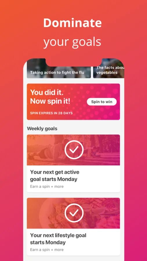 Throughout your busy week, Vitality One will send you reminders to complete your selected goals and activities, helping you keep your health top-of-mind.