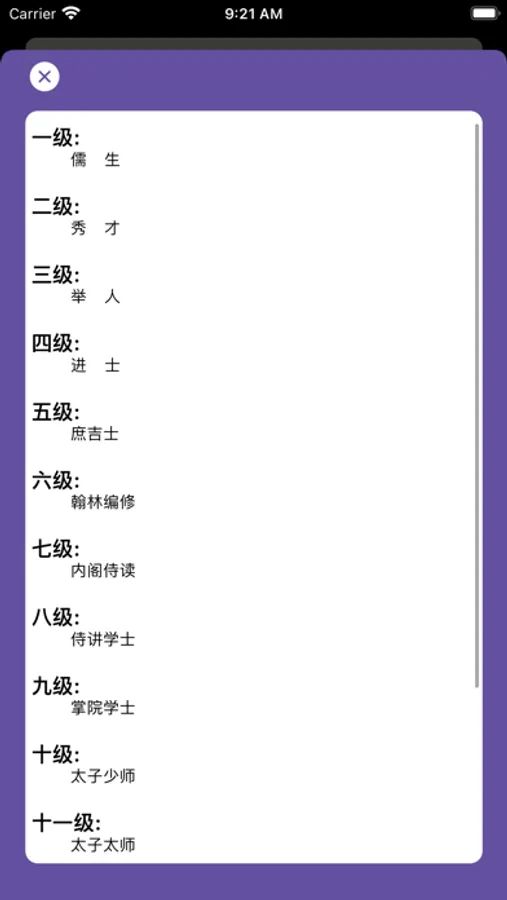 ◆ 成语闯关 - 儒生养成记。从儒生到天子帝师的艰辛历程,成语益智小游戏,寓教于乐。30000条成语,AI智能调节难度,等您来完成的任务。