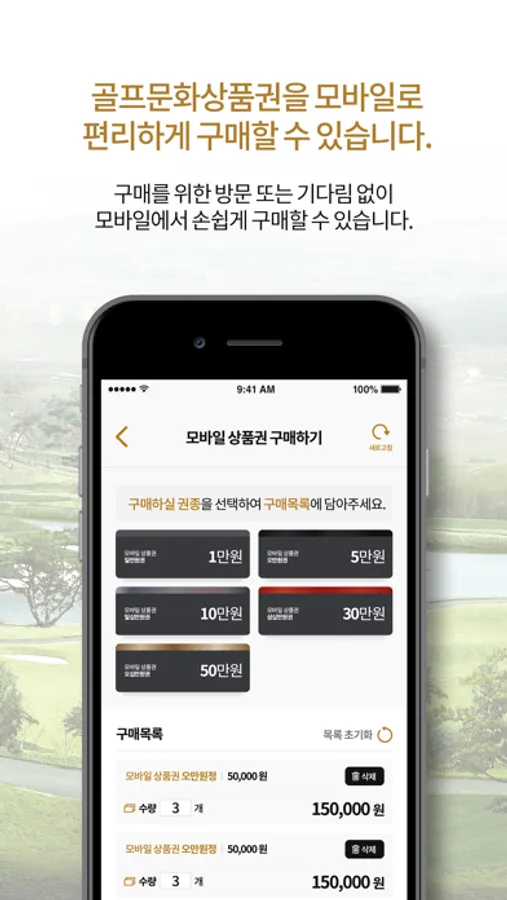 이제 골프문화상품권의 구매처를 찾아 헤매지 않으셔도 됩니다. 모바일에서 편리하게 구매하세요.