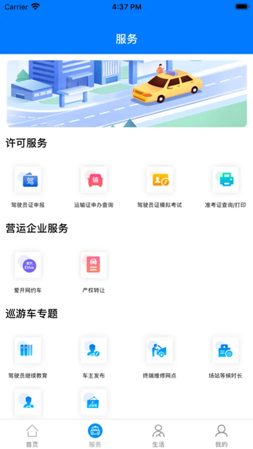 二、巡游车专区:为广大巡游车司机提供“企业招聘信息”、“个人求职”、“车主发布” 、“交通枢纽及场站营运信息”等服务功能;