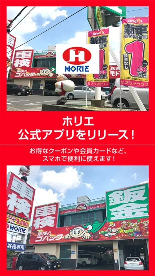 ホリエの公式アプリはお車をより快適に、安心してお乗りいただくためにお客様への情報配信、車検満期のご案内からオイル交換のご予約などが可能なアプリです!