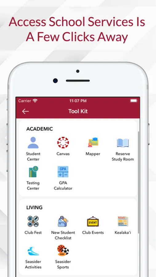 - Campus Map: Get lost? Navigate to anywhere on campus, such as buildings, classrooms, and facilities.