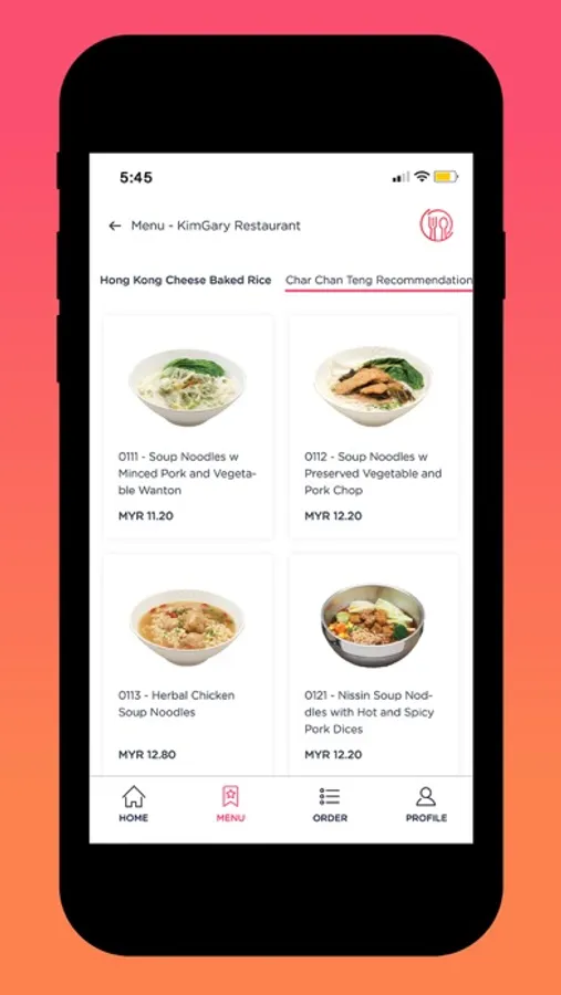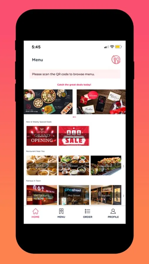 - Allow user to SCAN the QR code & ORDER their favourite food from the e-Menu.
