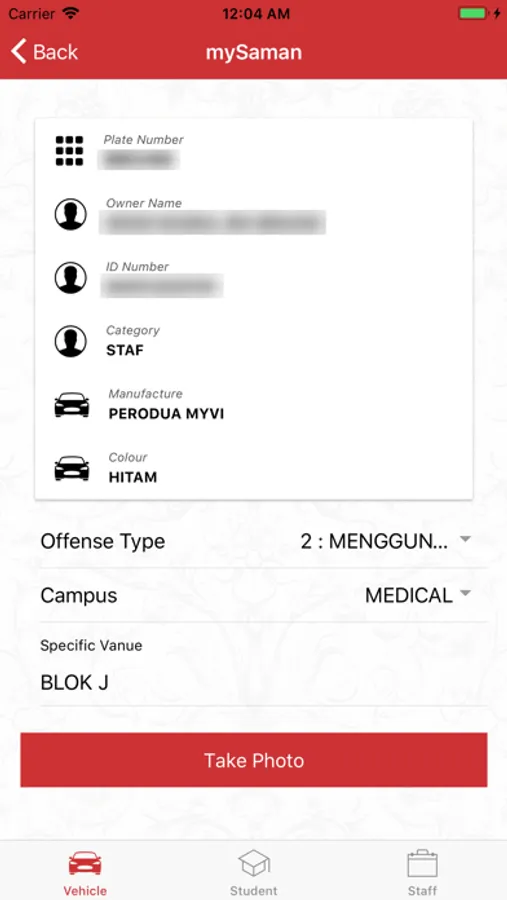 An application developed specifically for use by the UniSZA Security Department. The main function available in this application is a vehicle suit. In addition, this application also serves as a tool for security guards to check-in or report.