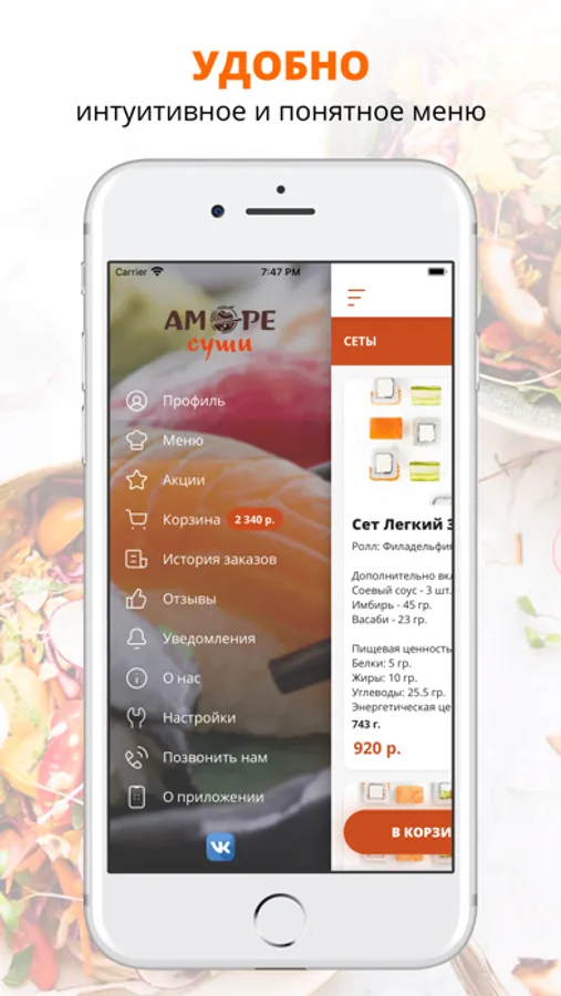 Воспользуйтесь удобным приложением для заказа еды «АМореСуши». Мы готовим и доставляем вкусные роллы и суши в Волгограде!
