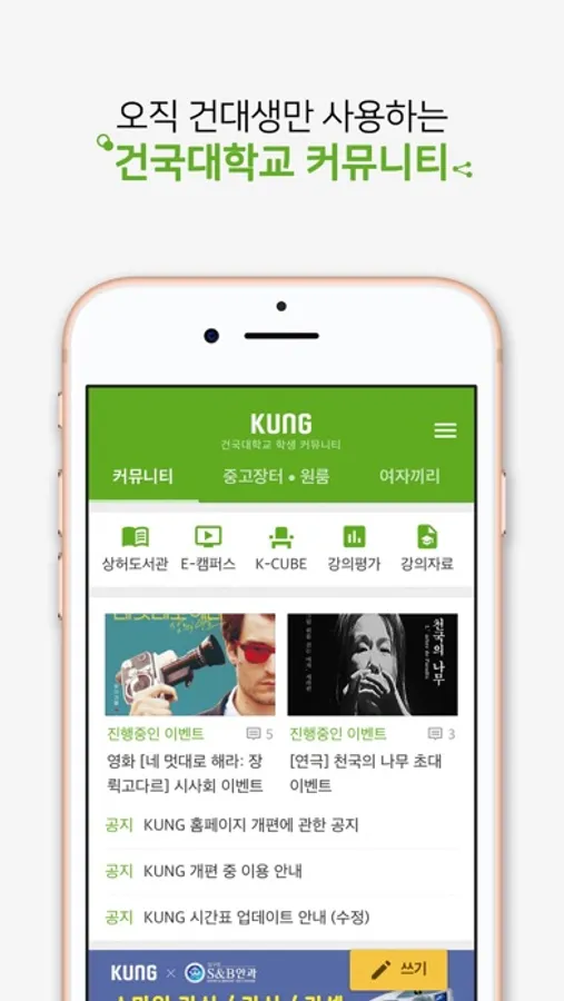 건대생이라면 다운 안받았을 일이 없다는 건대 필수 어플리케이션 건국대학교 커뮤니티 KUNG입니다!
