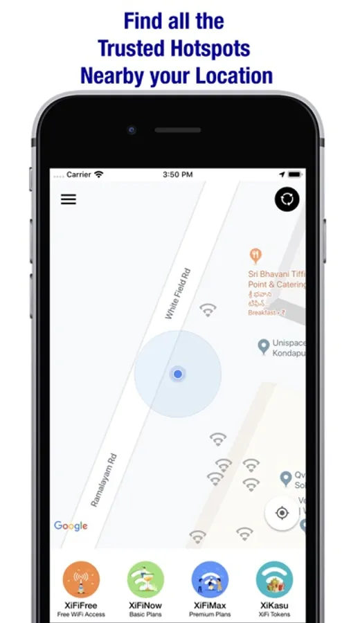 To register, enter your Name, Mobile Number and Email. Optionally enter a Referral-Code provided by a Friend. A One-Time-Password (OTP) will be sent to your Mobile Number. Once registration is completed, you can view all the XiFiZone Hotspots in your vicinity on the Map.