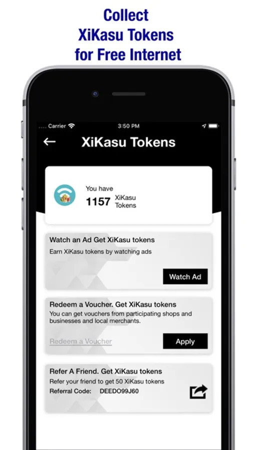 XiKasu is the currency of XiFi. You can collect XiKasu tokens by watching Ads, Redeem Merchant Vouchers, Refer-a-Friend and more.