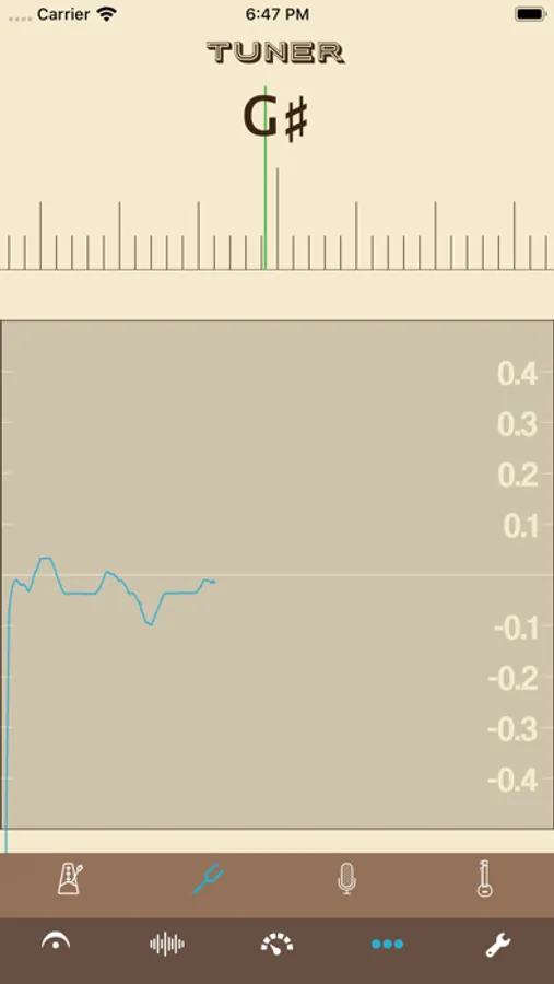• Is there a tuner? Of course there is! You can even visualize your tuning stability from the beginning to the end of a long tone.