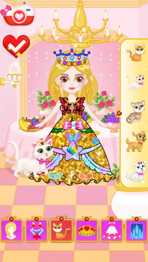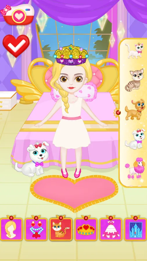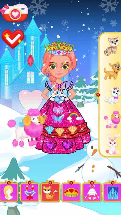 Become a fashion designer, help the four princesses do a facial and choose the best make up. Be creative, use colors, glitters, patterns and beautiful decorations to design a sparkly tiara and a fabulous dress for the princess. Choose adorable pets for princesses.