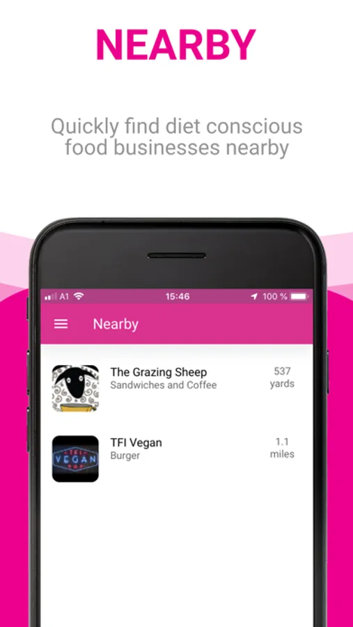 When “Location Services” are enabled and you open the app, the nearby list shows local businesses that offer "And it Has" insights into their menu.