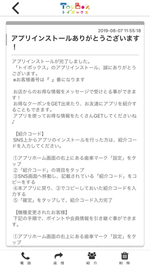 ToyBoxのアプリをSNSを通じてお友達に紹介する事ができます。