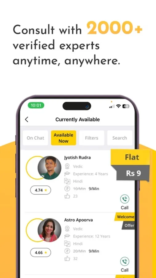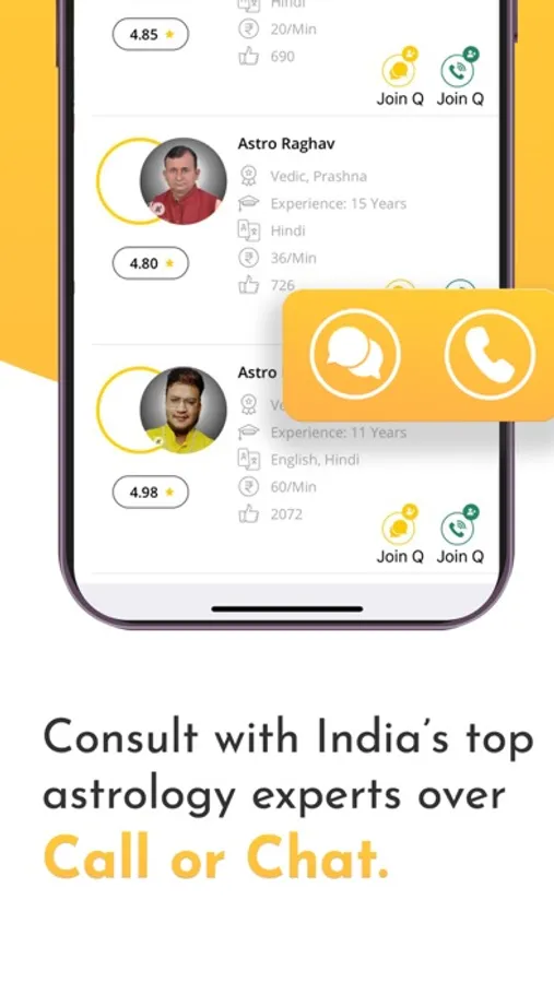 2. Pick among expert astrologers, numerologists, tarot card readers, Kundli astrologers, Vedic astrologers, Vastu Consultant, Nadi Astrologer, KP astrology experts, and, among others, on our live astrology app.