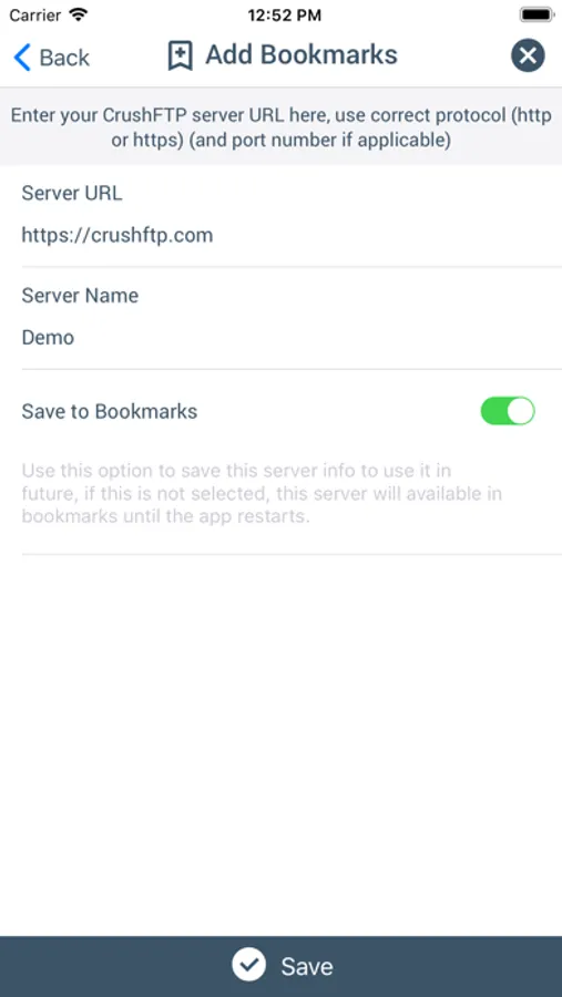 - Other apps can share files to CrushClient and upload it to the server