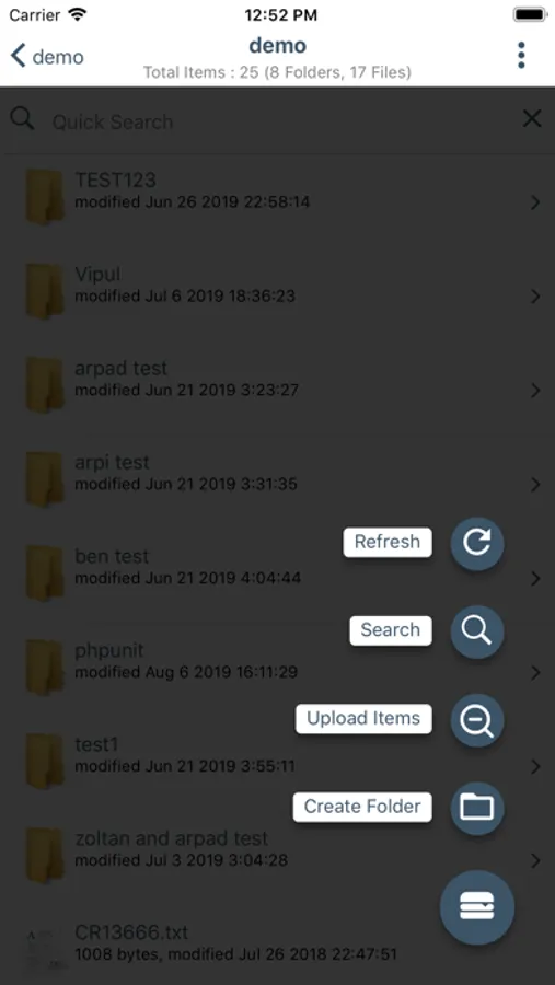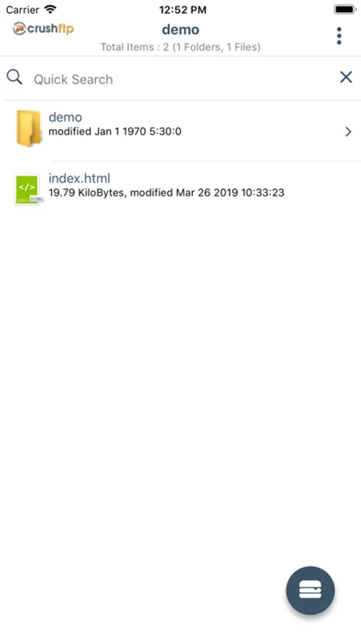 Using CrushClient we can log in to CrushFTP server and list server files and do all file operations, actions supported are: