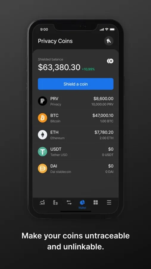 Enable privacy for any of your cryptocurrencies, and any of your crypto activities. Hide your Bitcoin balance, obscure your Ether history, or buy DAI privately – all from the Incognito wallet.
