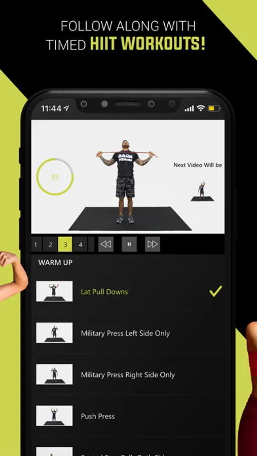Videos of every exercise are played throughout each interval during your workout on the main large screen.